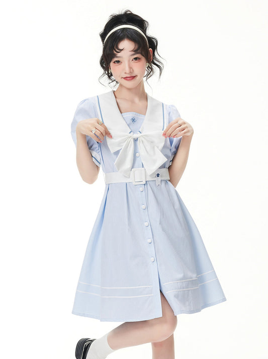 リボンセーラーパフスリーブフェアリーベルトワンピース