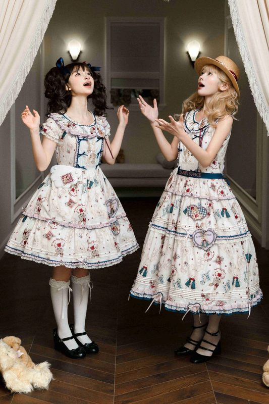 レトロアニマルパフスリーブドレス+ノースリーブドレス