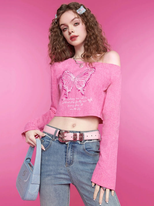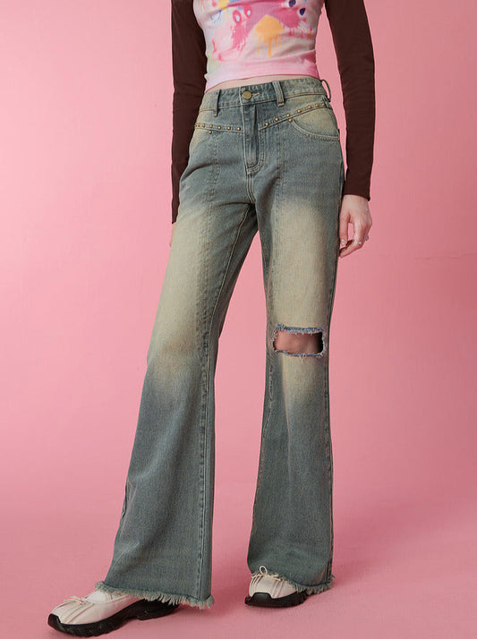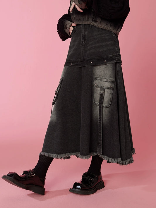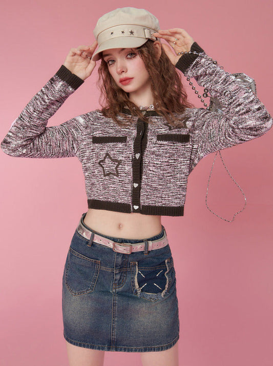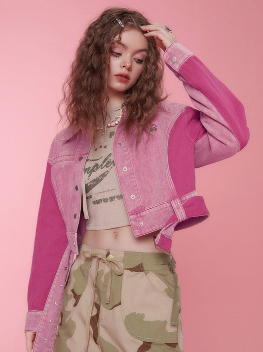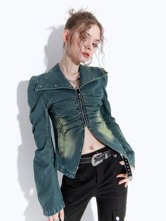 ポインテッドカラーグラデーションデニムジャケットトップス