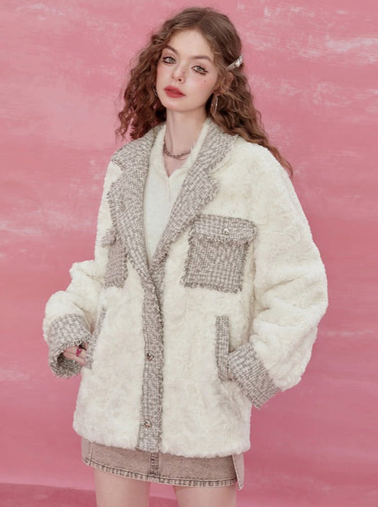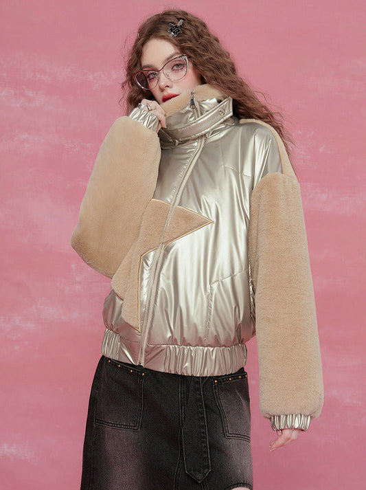 スプライシンググロッシーファースタンドアップカラールーズジャケット