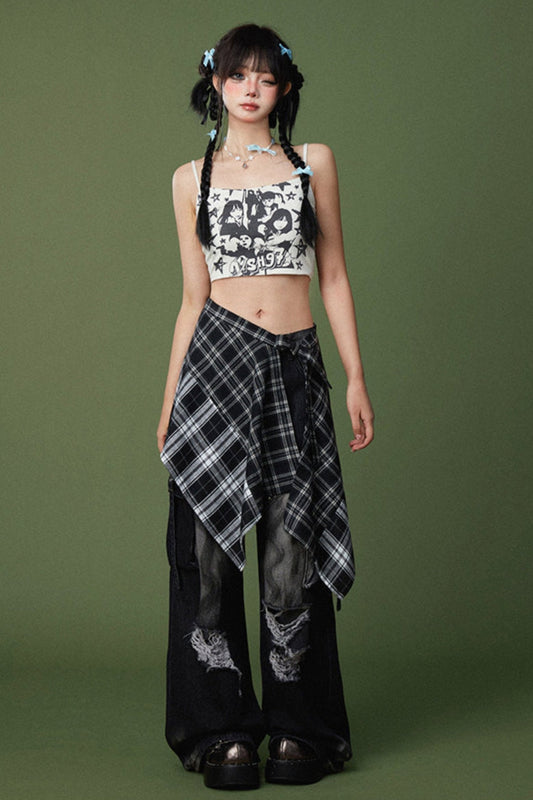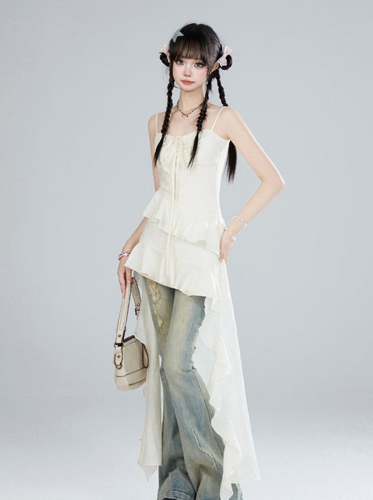 オフショルダートップス+キャミソール+フレアパンツ+ショートパンツ