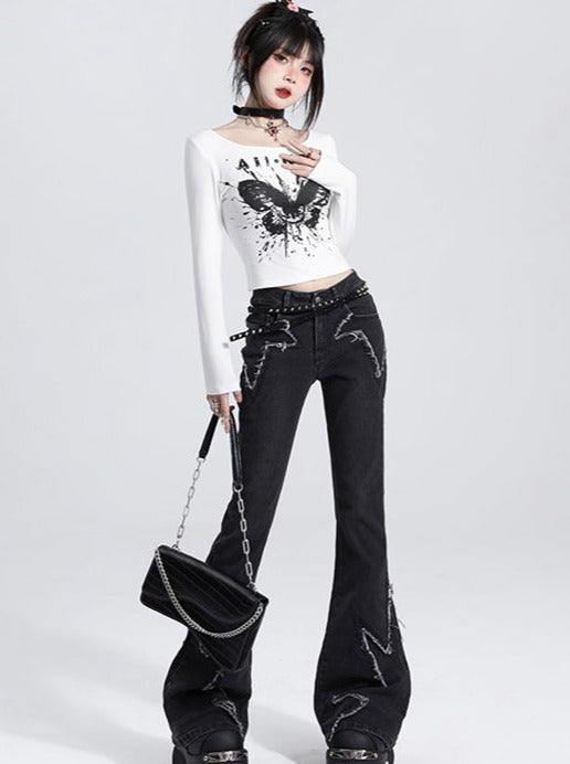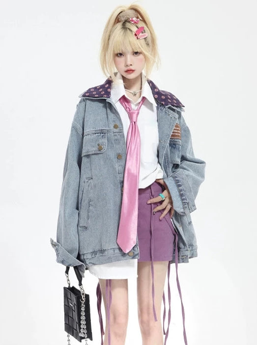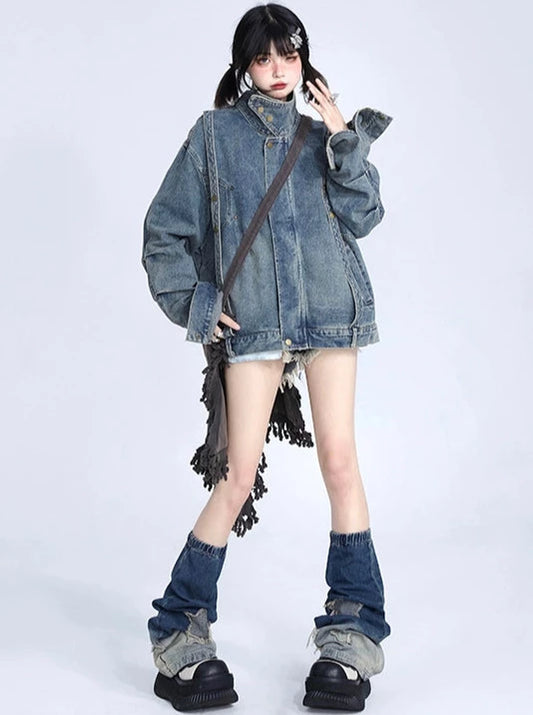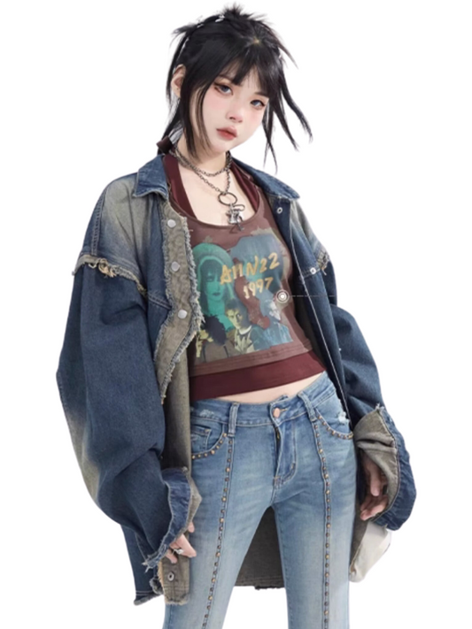 アメリカンスタイルレトロスターステッチウォッシュデニムジャケット
