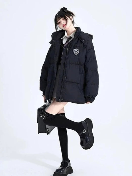 カレッジスタイルブラックパデットダウンジャケット【ショート・ロング】