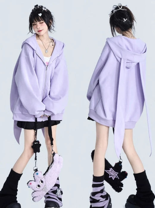 うさ耳フーディージャケットオーバーサイズジップカーディガン