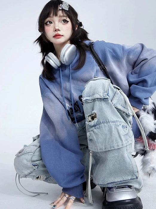 アメリカンレトロオーバーサイズグラデーションフーディージャケット