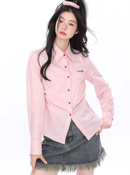 アメリカンカレッジ スタイルレッドボタンウエストプリーツシャツ