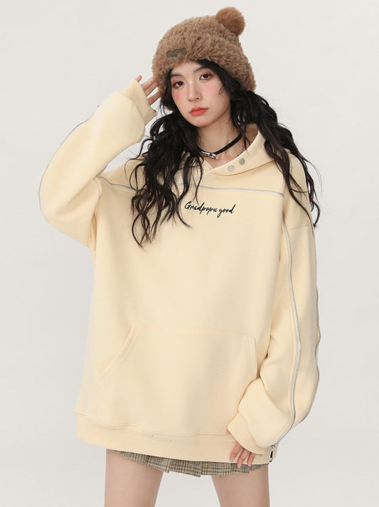 アメリカンレトロスウェットシャツフード付きルーズオーバーサイズツーピースセット