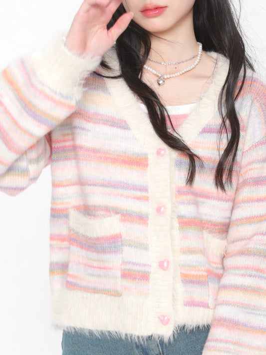カーディガンフェイクファーレイジーソフトワックスニット+ホルターネックトップ