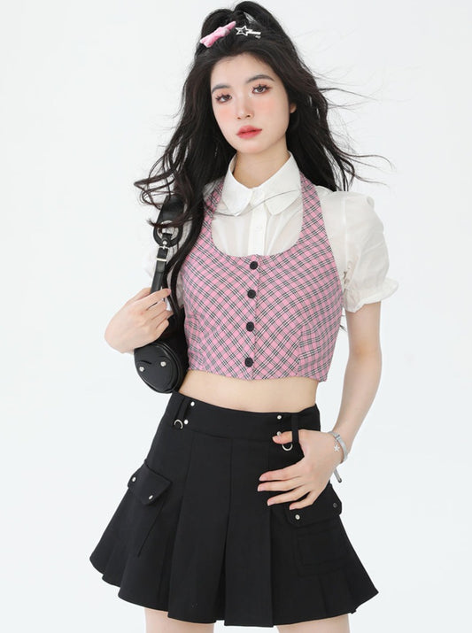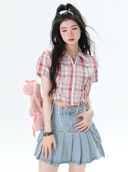 アメリカンレトロカレッジスタイルレッドチェックプリーツスカート