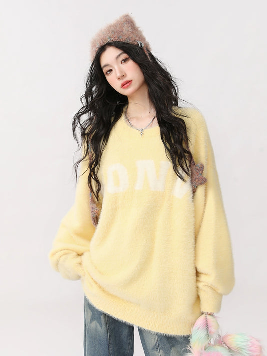 アメリカンレトロカジュアルルーズソフトラウンドネックレターセーター