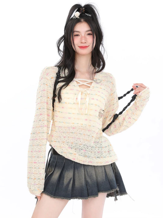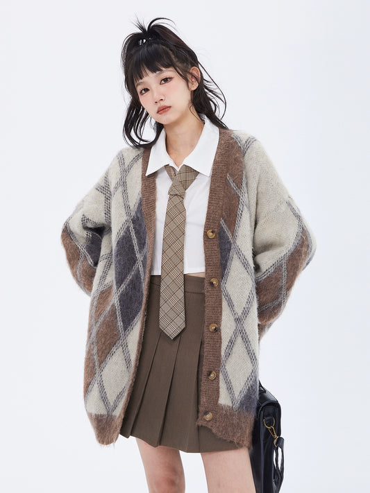 アメリカンレトロダイヤモンドカーディガンルーズレイジースタイルニット+スカート