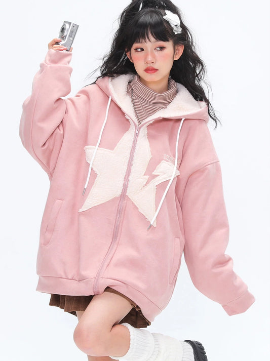 スエードスターフード付きプラスベルベットスウェットシャツジャケット
