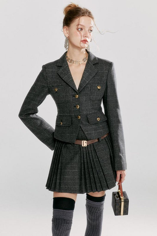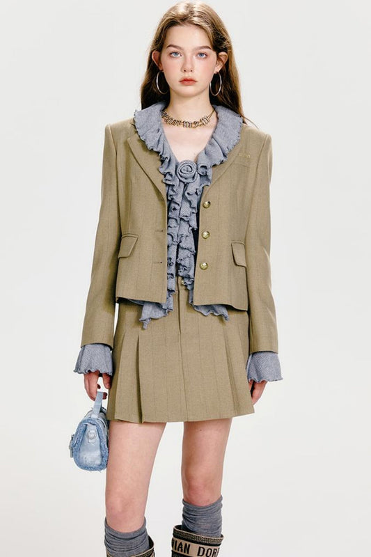 ポケットツイードジャケット+ホットパンツ+リボンシャツ
