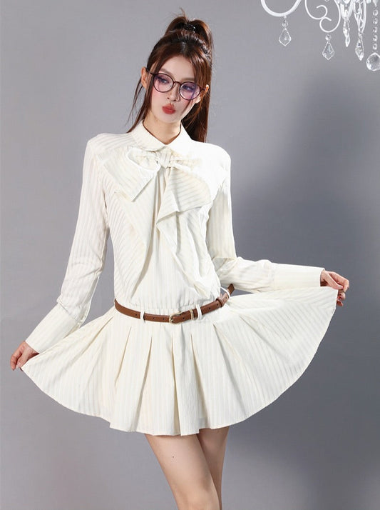 レトロカレッジスタイルシャツ+プリーツスカート+セーター