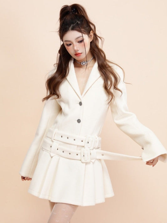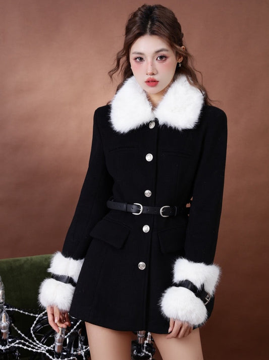 リッチレディスタイルファーミッドレングスウエストウールコート
