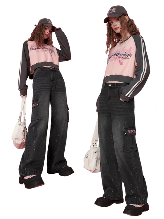 アメリカンハイストリートルーズデニムカーゴパンツ