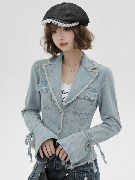 アメリカンレトロウォッシュスーツカラーデニムジャケット