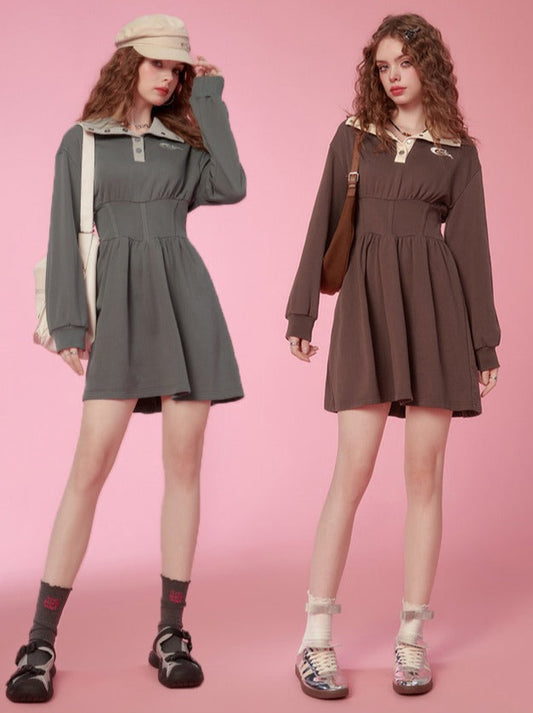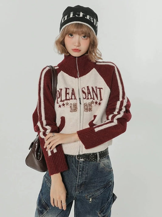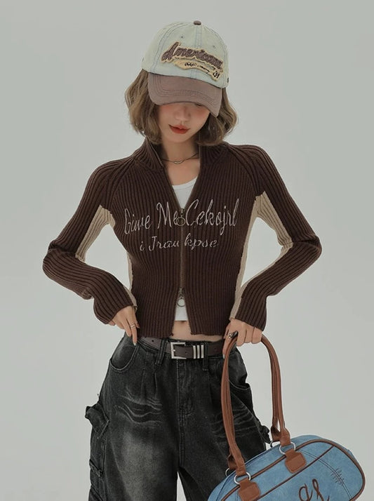 アメリカンレトロコントラストタートルネックジップアップトップス
