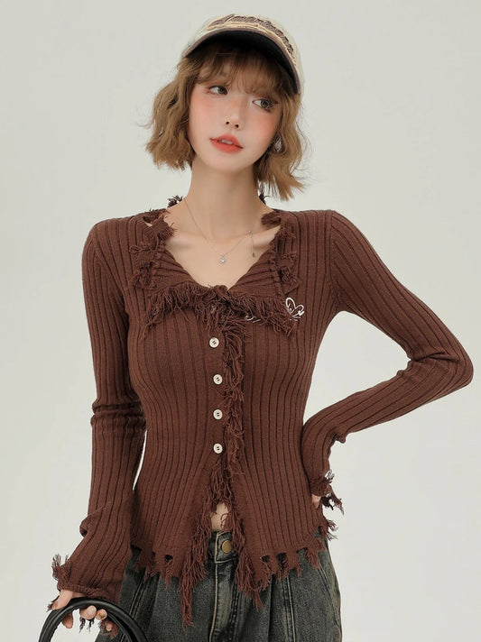 アメリカンレトロシングルブレストタッセル スリムカーディガン