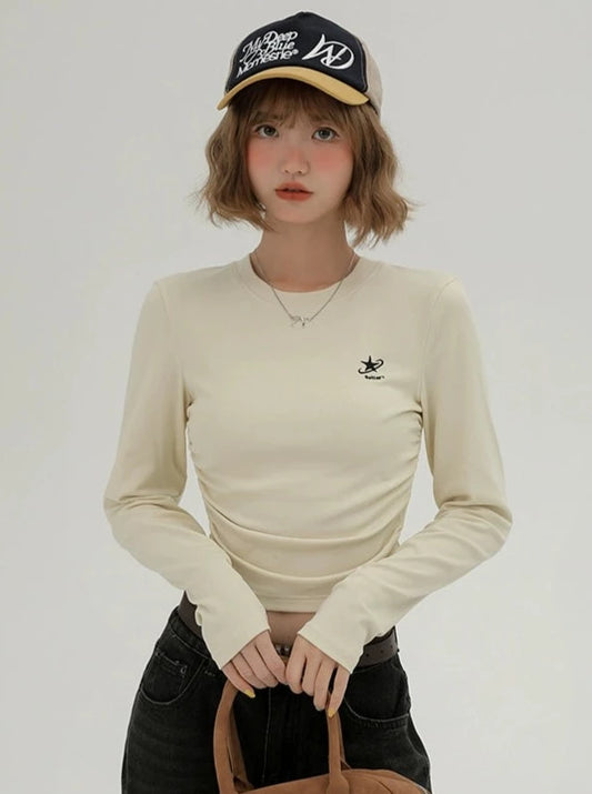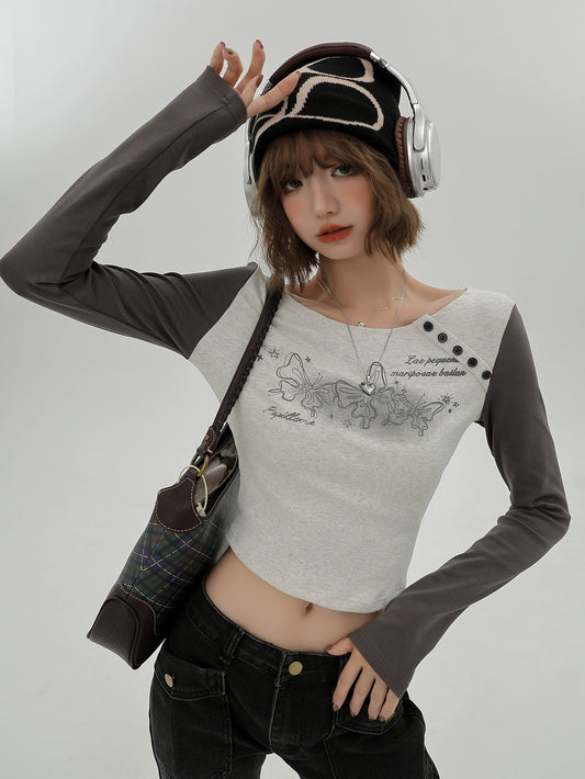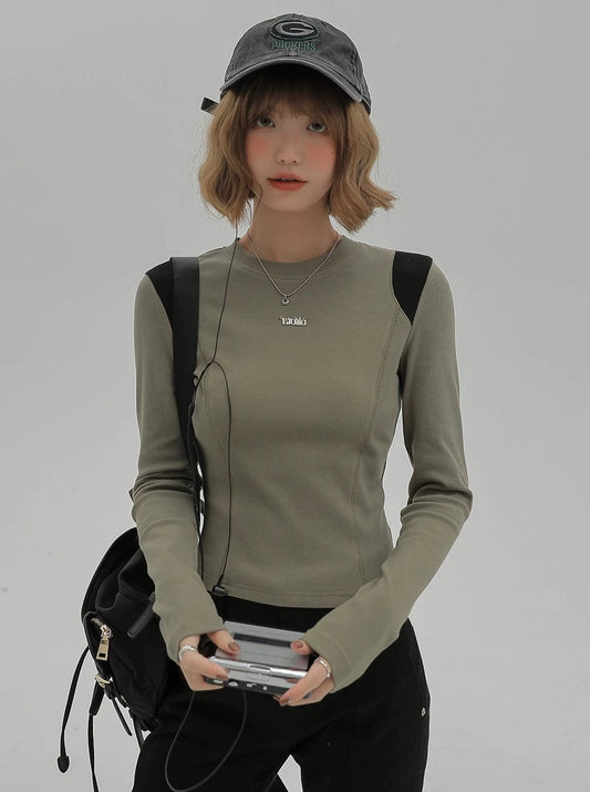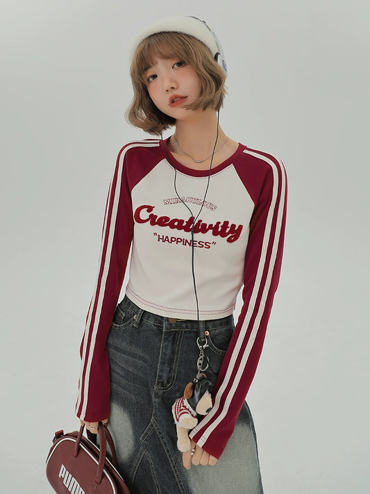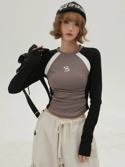 アメリカンホットガールコントラストカラーショートスリムロンT