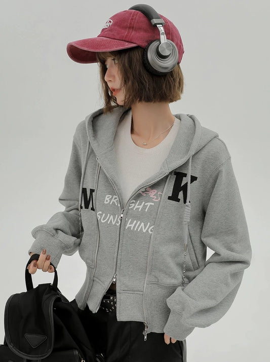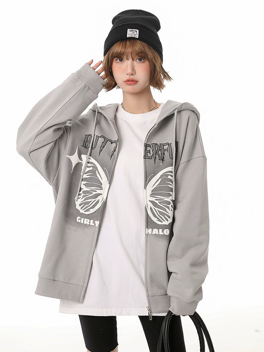 アメリカンキャンパススタイルバタフライプリントミッドレングスフードパーカー