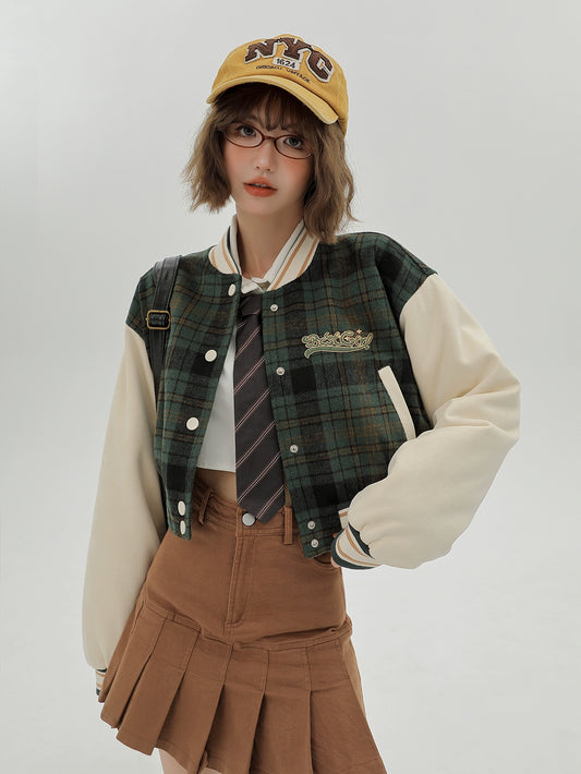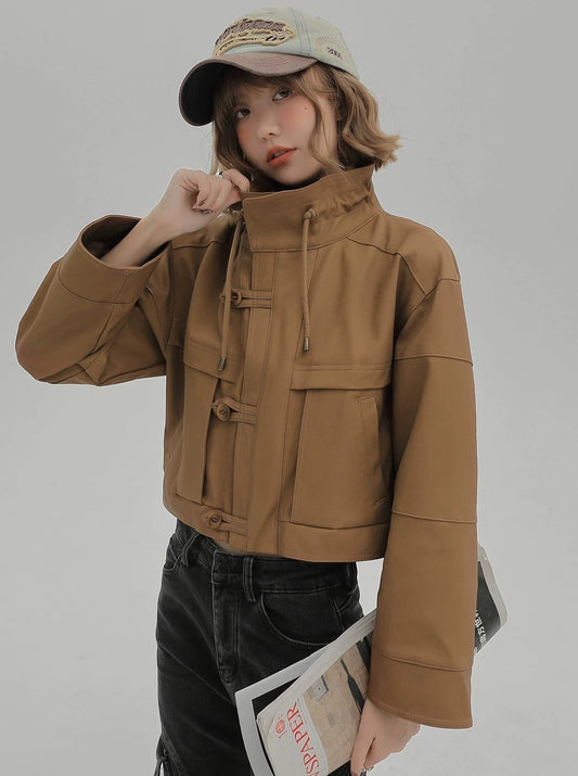 アメリカンレトロブラウンスタンドカラーショートレザージャケット
