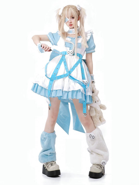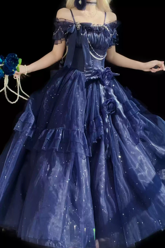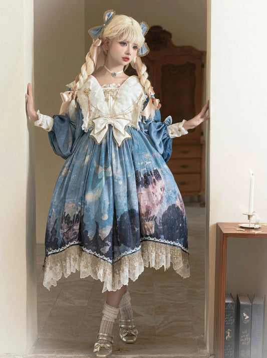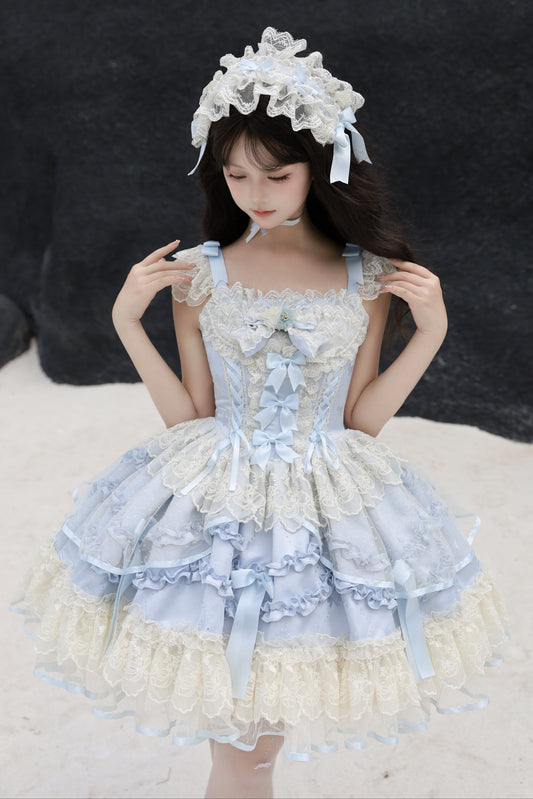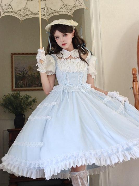 【予約商品】スイートブルーロリータワンピース+カラー+リボン