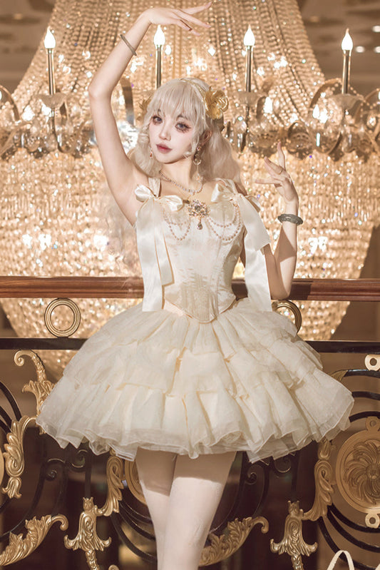【予約商品】シャンパンゴールドジャカードウエストフレンチバレエチュチュセットアップ