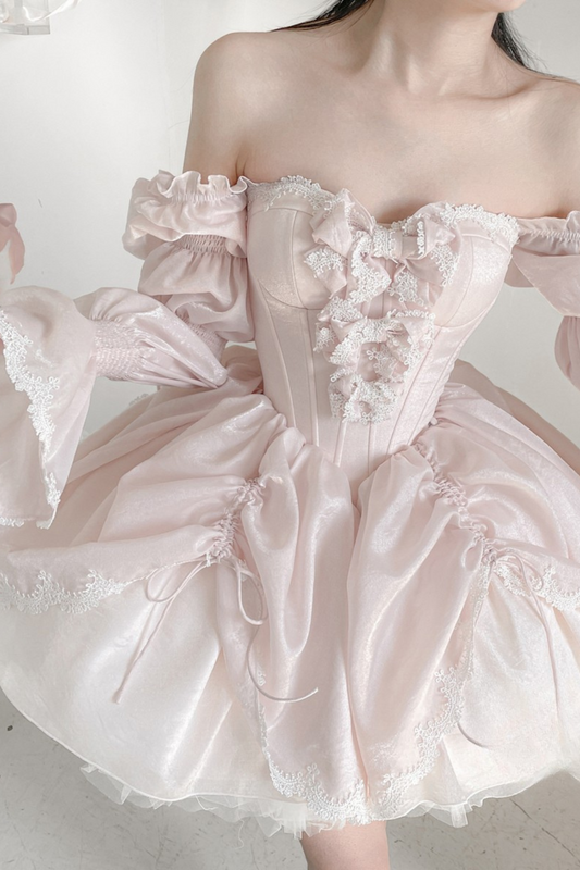 ビクトリアフラワーチューブトップス+ショートスカート+ロングスカート+ガーゼスカート+アームリング+チョーカー