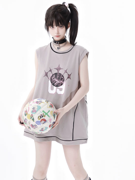 アメリカンレトロスポーツスタイルバスケットボールユニフォームサマーフレッシュトップス+キャミソール+レッグウォーマー+パンツ