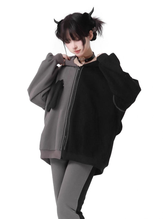 うさ耳コントラストジップパーカーデザインパンツスカート