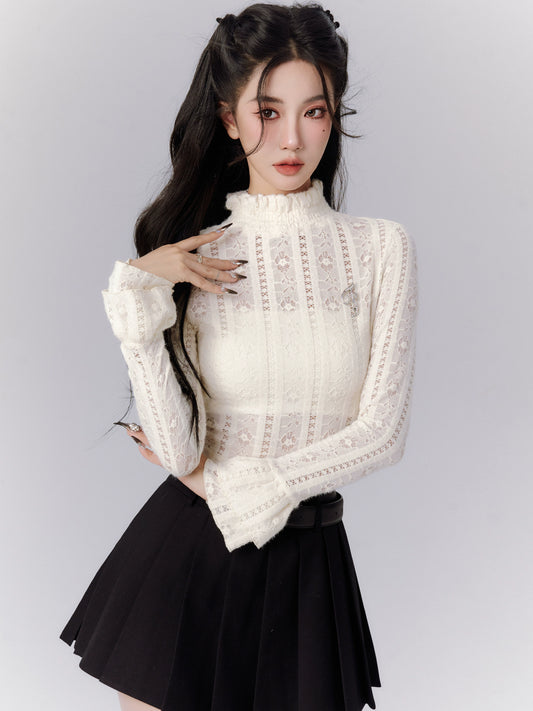 ハイネックプルオーバーハイウエストショートパウダーセーター
