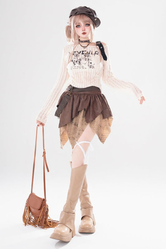 イレギュラーリップドルーズニットトップ