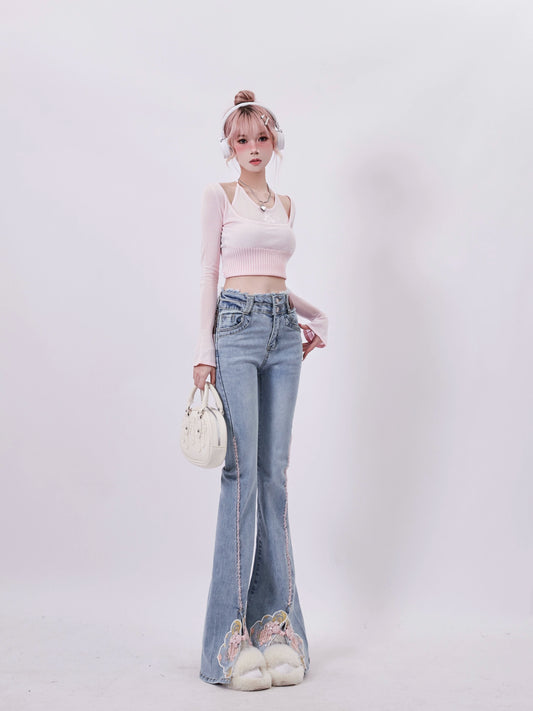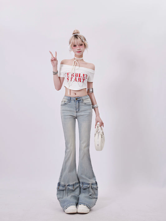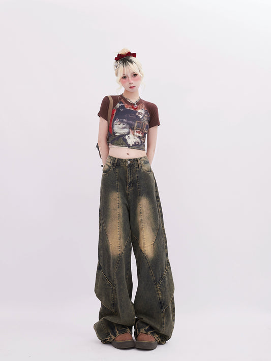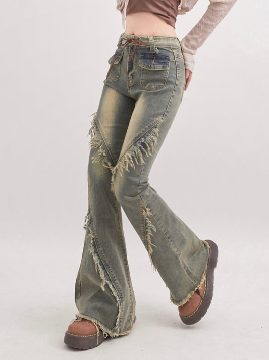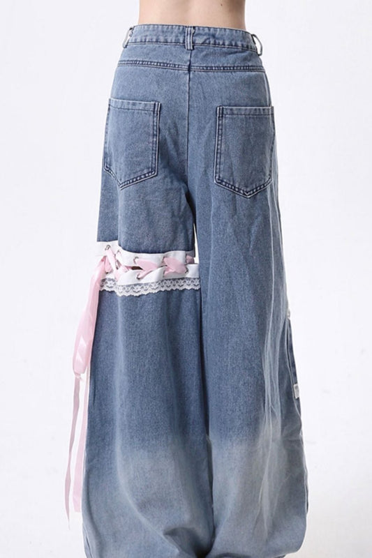 アメリカンレトロ グラデーションストラップデザインジーンズ
