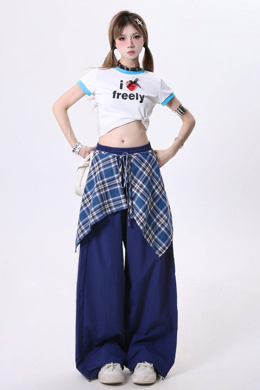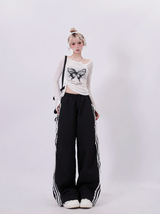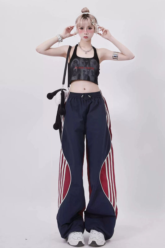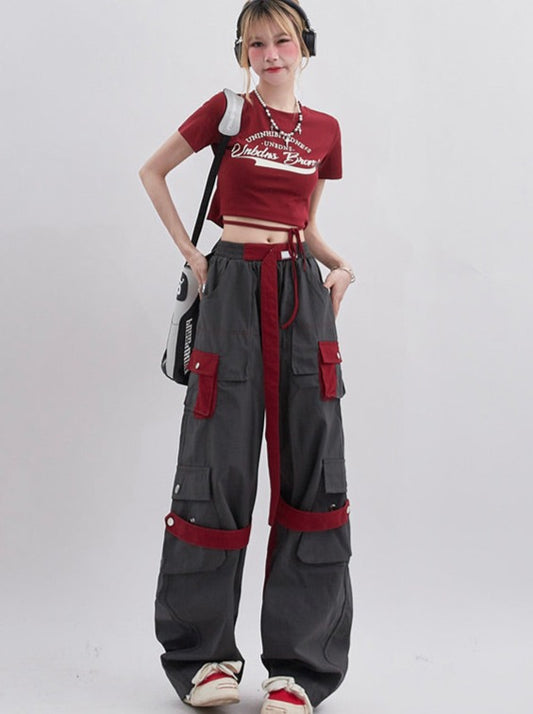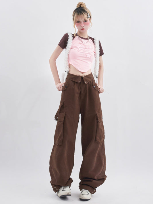 アメリカンストリートフランジカラーウエストカジュアルパンツ