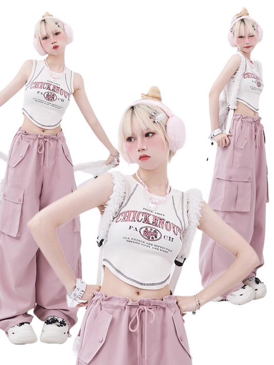 アメリカンスタイルクリエイティブレタープリントショートタンクトップ