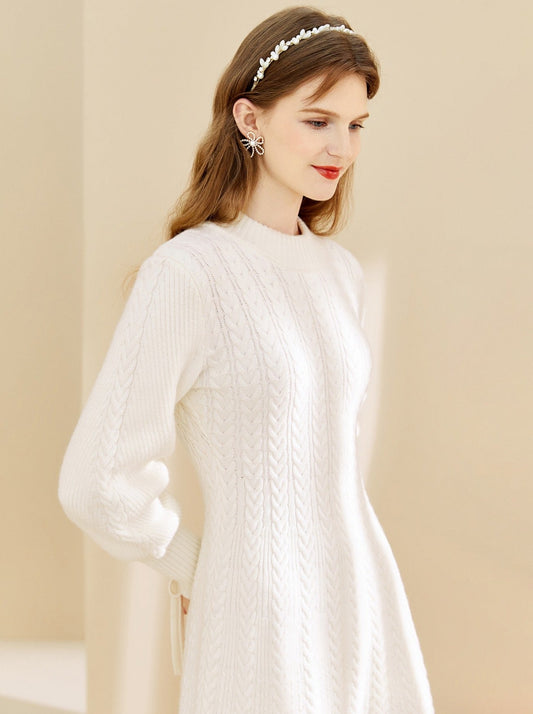 ラウンドネックツイストニットランタンスリーブワンピース