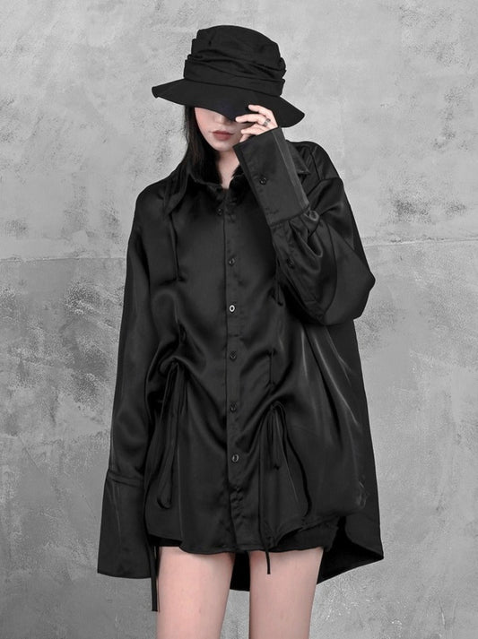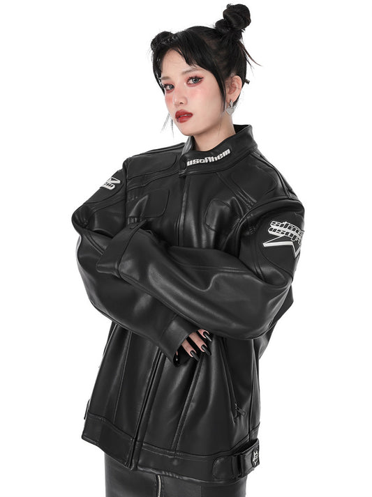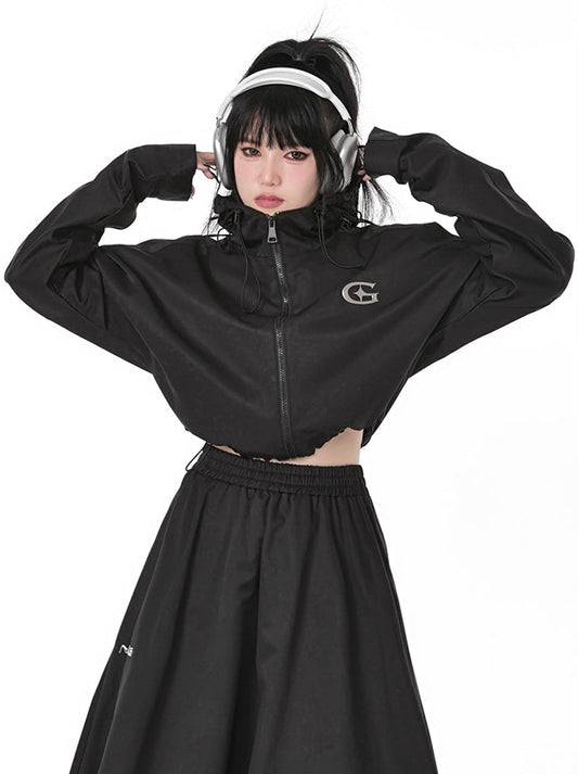 クールカジュアルルーズドローストリングハイネックフーディージャケット