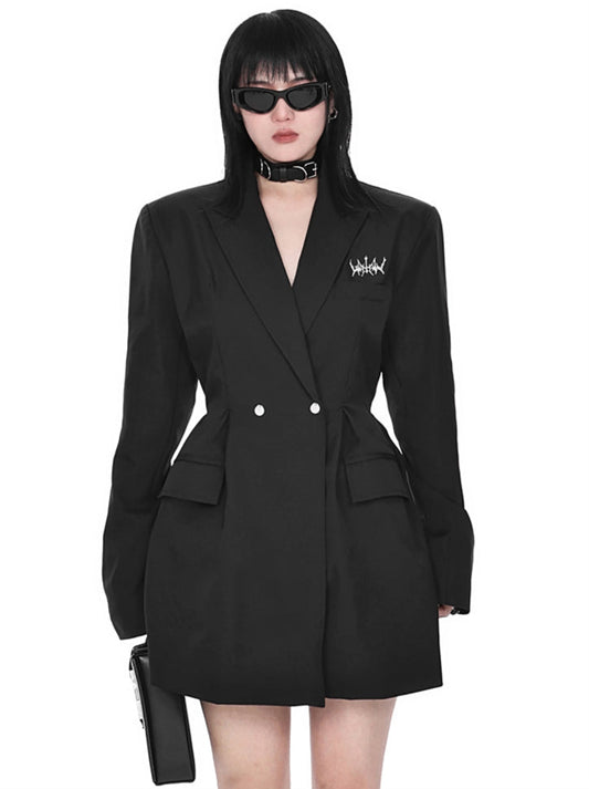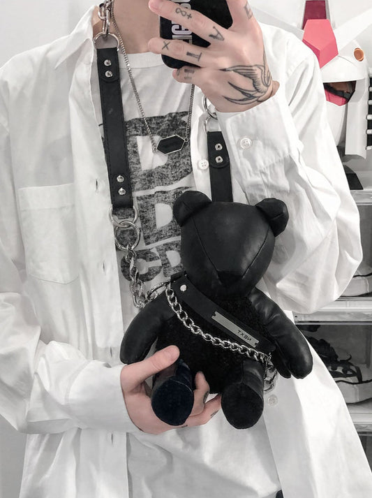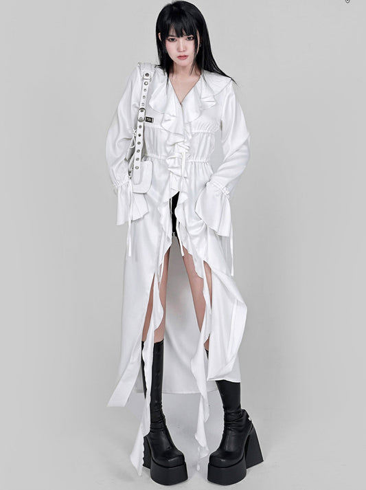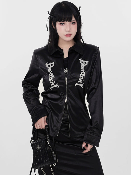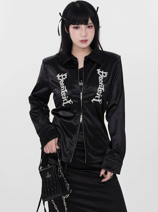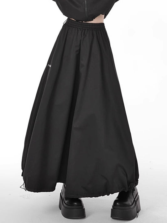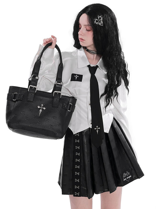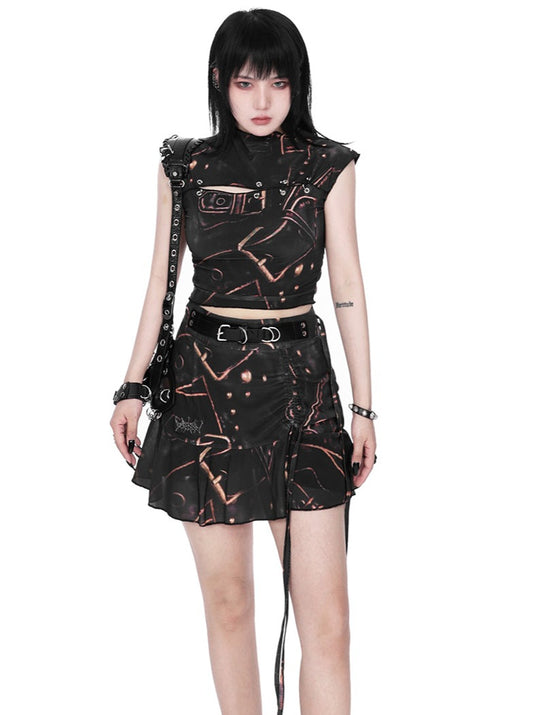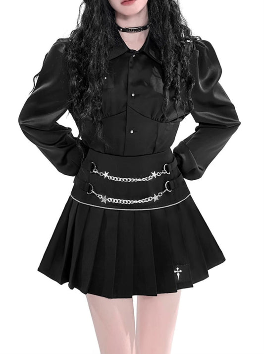 スターメタルチェーンパンクスリムカーブカットプリーツスカート
