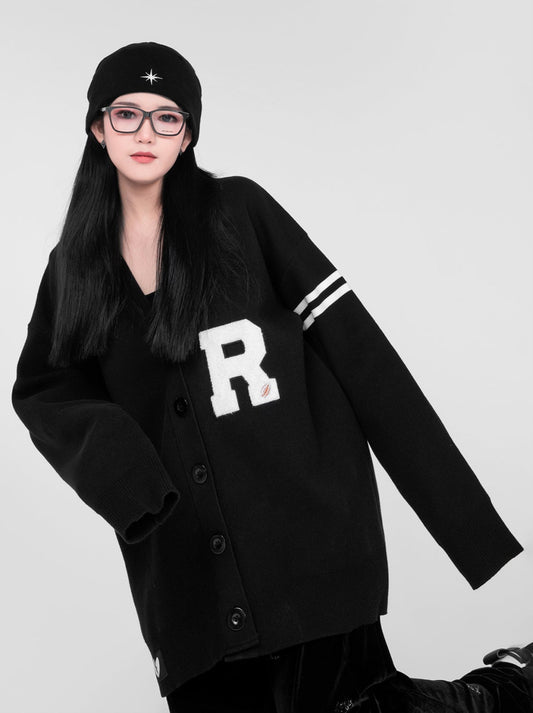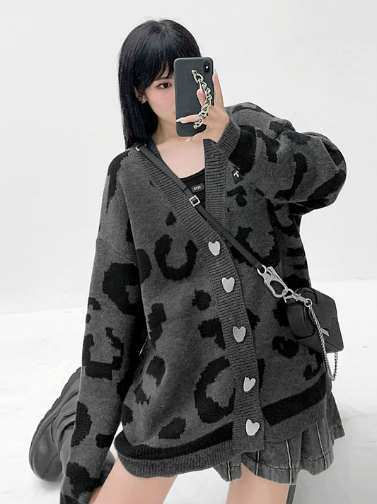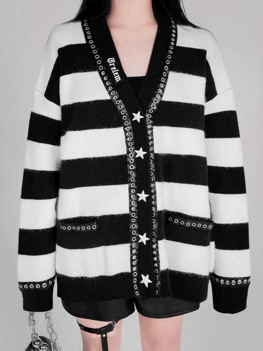 カスタムスターボタンパンクゴススタイルストライプニットカーディガン