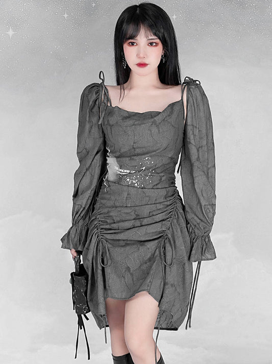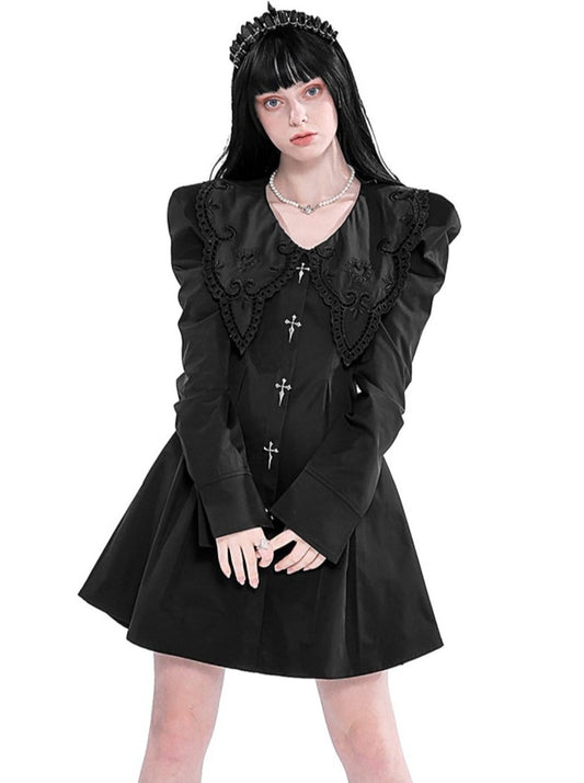 クロスメタリックパフスリーブバロックドールカラーワンピース