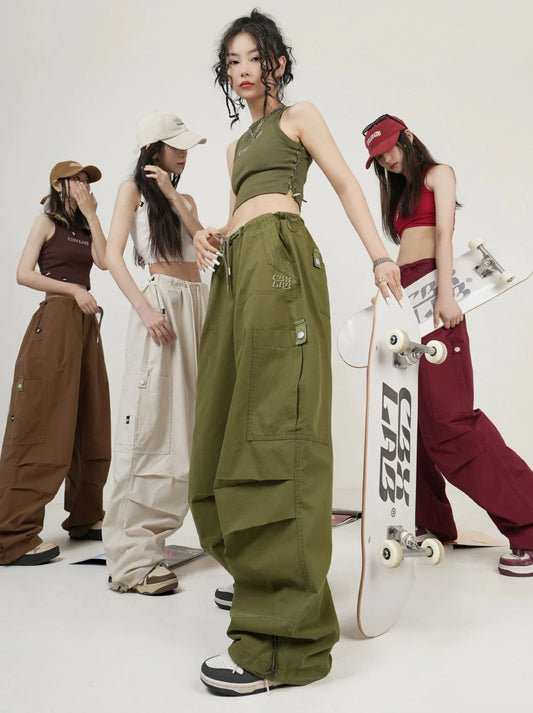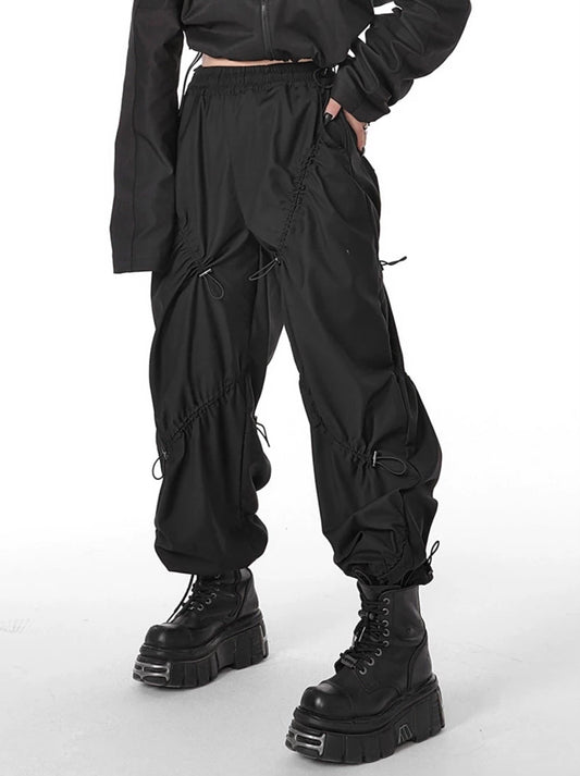 クールガールスリムレッグドローストリングプリーツダークパンツ