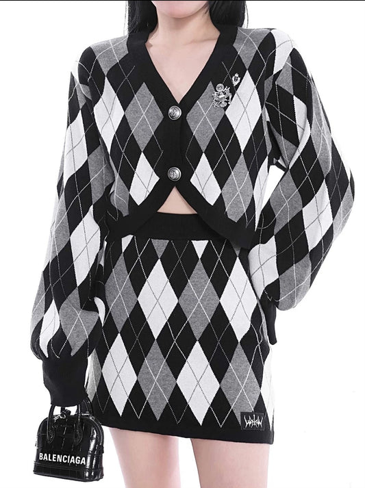 スパイシーレトロルーズスリムアーガイルニットスーツセットアップ