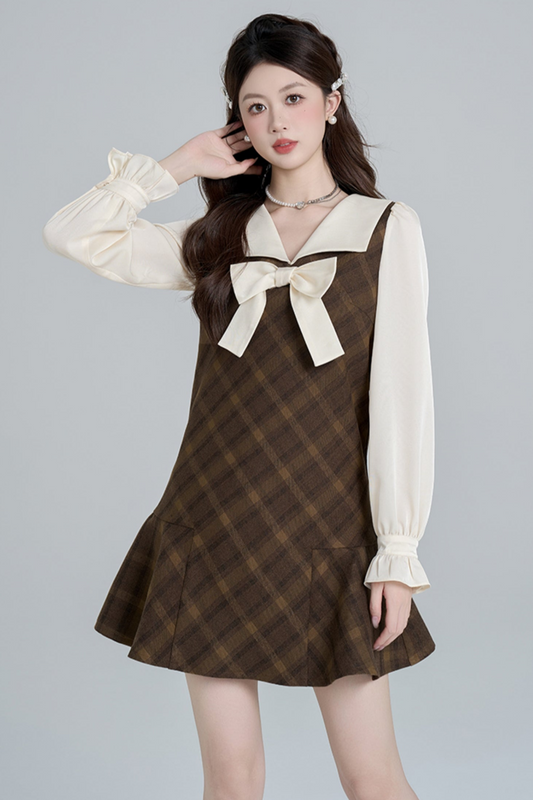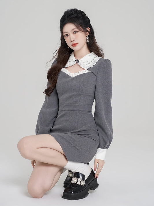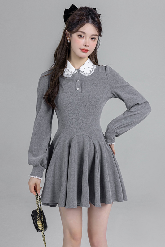 グレーレーススプライスプルオーバークロップトップ+チェックスカート