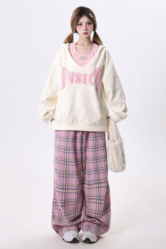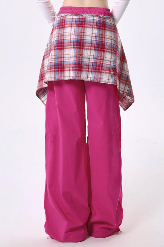 コントラストプレイドスカートデザインジャズパンツ