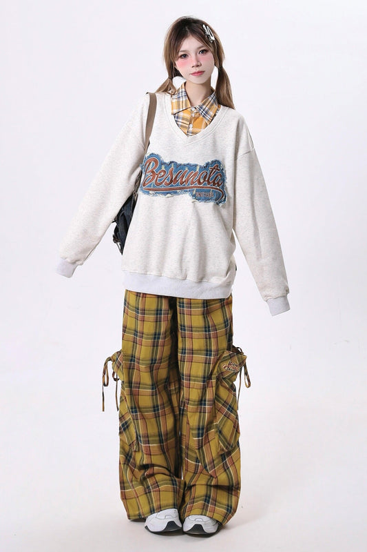 コントラストチェックレトロルーズパンツ