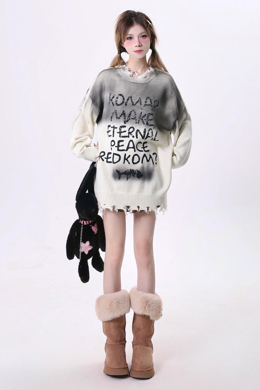 ディストラクションデザインモノグラムニットセーター