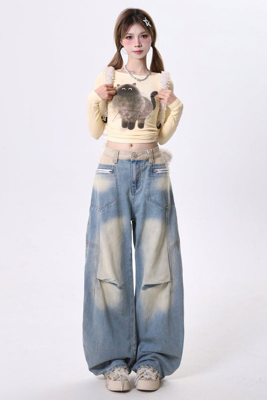 カットアウトレースデザインルーズジーンズ