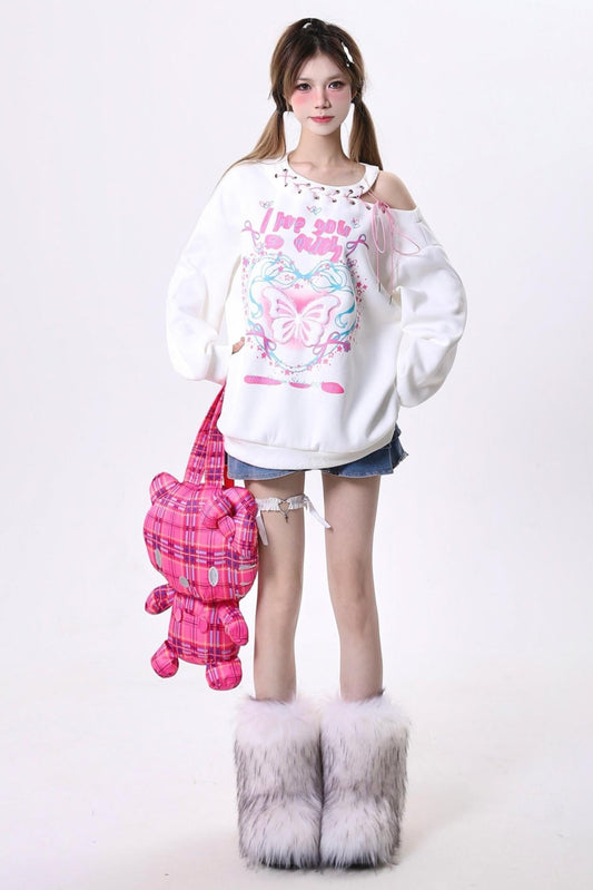 バタフライエンブロイダリータイオフショルダートップ