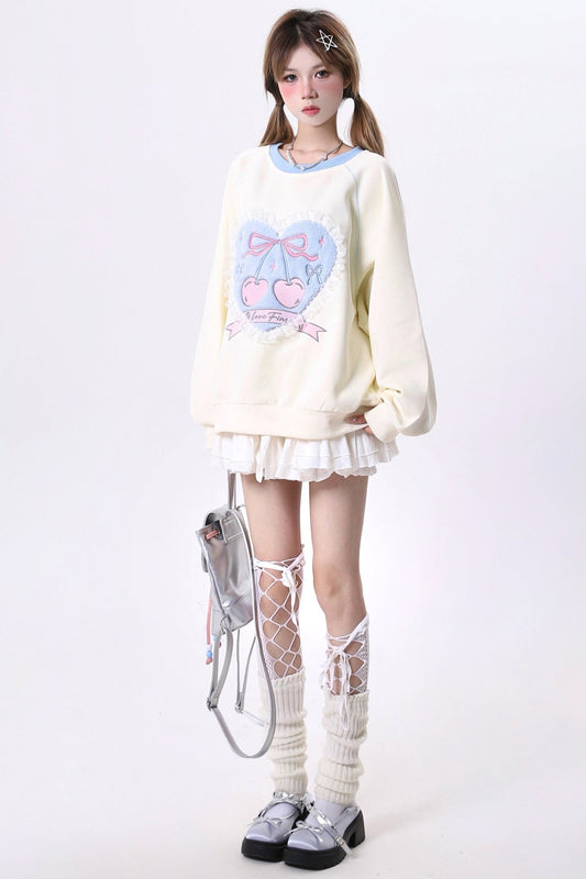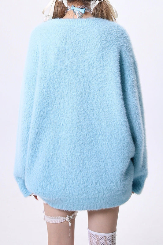 フロッカードキャットデザインルーズニットセーター